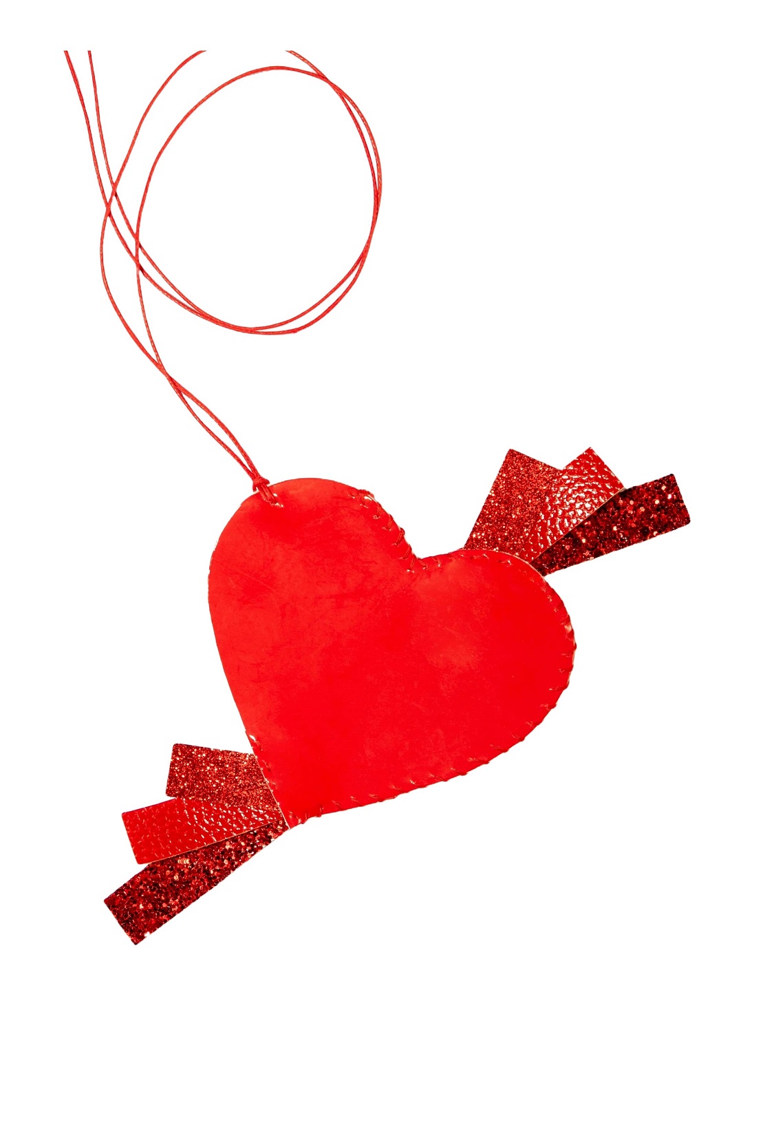 Un cuore, in equilibrio, per questo ciondolo. Interamente tagliato e cucito a mano. Di lunghezza regolabile, realizzato in pelle riciclata, recuperata da scarti di lavorazione industriale, con texture diverse ed una parte in finitura glitter che dona un tocco moderno e contemporaneo.