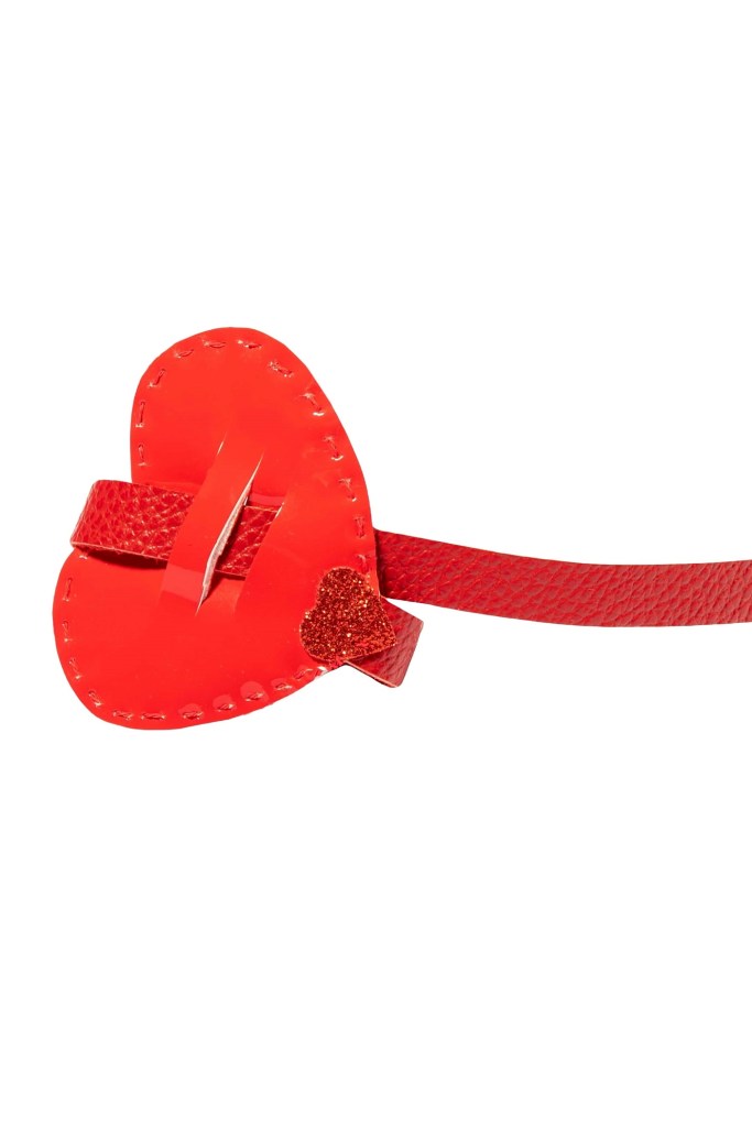 Due cuori per un bracciale. Interamente tagliato e cucito a mano. Di lunghezza regolabile, realizzato in pelle riciclata, recuperata da scarti di lavorazione industriale, con una parte in finitura glitter che dona un tocco moderno e contemporaneo.
