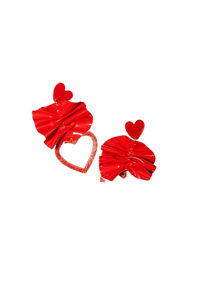 La celebrazione dell’amore universale, con una collezione che è una questione di forme, un’unione di materiali diversi e tagli particolari con un unico filo conduttore: il cuore. Rosso, ovviamente.