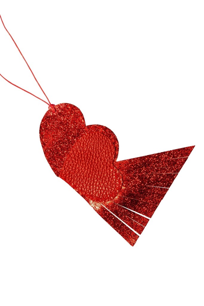 Un cuore con frange per questo ciondolo. Interamente tagliato e cucito a mano. Di lunghezza regolabile, realizzato in pelle riciclata, recuperata da scarti di lavorazione industriale, con una parte in finitura glitter che dona un tocco moderno e contemporaneo.