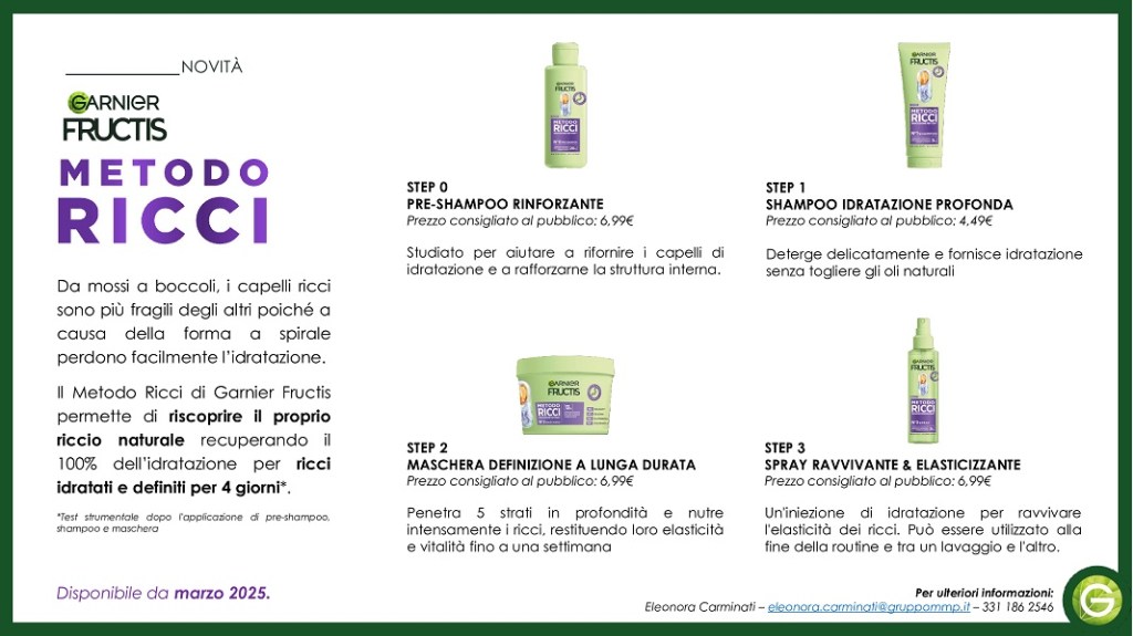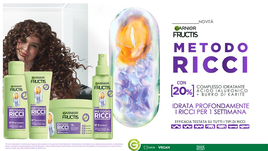 Per le chiome ricce, che hanno bisogno di attenzioni speciali, la risposta è Garnier Fructis Metodo Ricci! Una linea ispirata al viralissimo Curly Girl Method, per avere ricci definiti e idratati fino a quattro giorni in quattro mosse:
