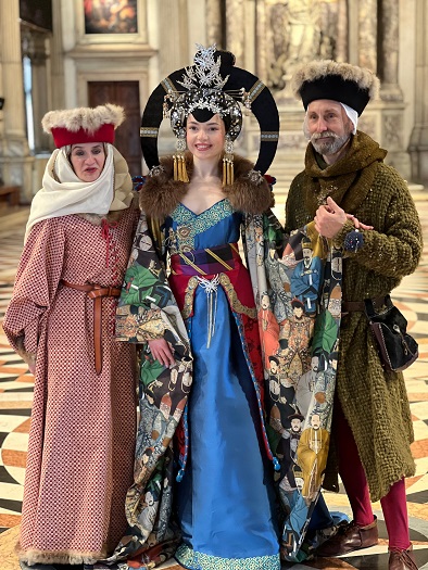 La Maria che verrà eletta il 3 marzo indosserà, invece, un abito che lo stesso Briggi sta disegnando ispirandosi anche al tema del Carnevale del 2025, ovvero la vita di Casanova e del Settecento veneziano. Lo scorso anno Silvia Zecchin indossò un abito da imperatrice orientale, richiamando il tema di Marco Polo. «Sono sempre stata appassionata al mondo orientale, anzi spesso mi han chiesto se fossi io stessa di provenienza orientale visto il mio particolare taglio degli occhi. Quindi indossare il costume che ha disegnato Francesco Briggi ispirato a Marco Polo è stato un orgoglio, un sogno, un onore che resterà indelebile».