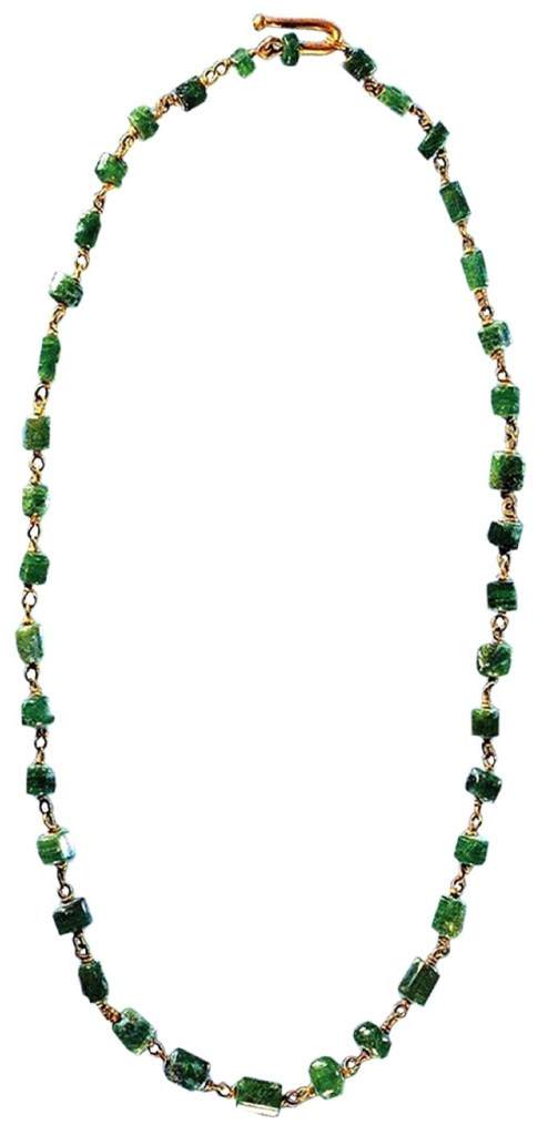 Nel Triclinium, una delle stanze più grandi della Villa 2 dove si rifugiarono gli abitanti nel tentativo di mettersi in salvo dalla furia del vulcano nell’eruzione del ’79 d.C., sono stati rinvenuti, durante la campagna di scavo del 1984, gli scheletri di cinque esseri umani, tra cui una giovane donna che aveva indosso bracciali d’oro in forma di serpente, con occhi in pasta di vetro verde. Al collo portava tre collane in oro: una catena con pendente a forma di luna crescente, una preziosissima collana in oro e smeraldi ed una elaborata collana a foglie e sotto il bacino una borsetta di stoffa con 21 denari.