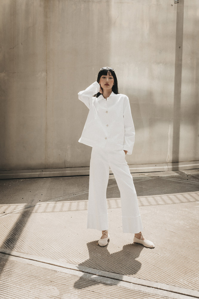 La loro ricetta per rinnovarsi e disintossicarsi dal fashion-stress prevede di indossare senza moderazione una giacca boxy firmata RED CAPSUL x CIGALA’S in tela denim candida con maxi tasche applicate in cui affondare le mani e di abbinarla a un paio di jeans realizzato da CIGALA’S, con gamba larga tagliata sopra il malleolo e dotata di altissimo risvolto appena sfrangiato.