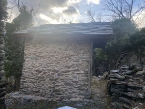 Discesi brevemente al pilone votivo, purtroppo deturpato dalla presenza di un brutto traliccio metallico, risaliamo sull’antica mulattiera costeggiata da importanti murettamenti realizzati a secco, sino alle rovine del borgate di Caselle inferiore e superiore (TOS59S) ove possiamo sostare a monte della Cappella di Santa Brigida in località Case Favretti contemplando, da una posizione eccezionale, l’ampio panorama sulla Val di Susa ed imbocco della Val Cenischia.