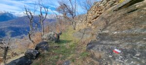ATTENZIONE: Pur essendo un itinerario ben marcato con segnavia specifici e con vernice bianco-rossa, è da considerarsi un vero percorso di montagna da affrontarsi con adeguale attenzioni e attrezzature escursionistiche. È fortemente sconsigliato affrontare ii tracciato in presenza di condizioni climatiche sfavorevoli, con forte vento, temporali e dopo forti piogge. Si raccomanda di non avvicinarsi ai ruderi delle borgate che si incontrano e porre adeguata prudenza quando si è nei pressi.