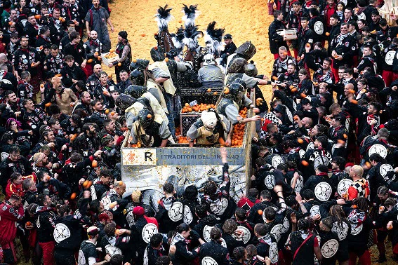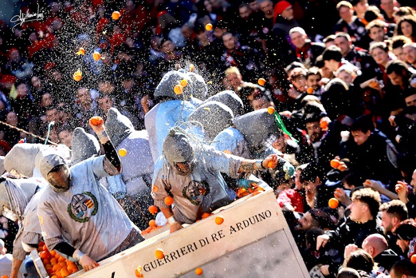 Non perdere l’occasione di vivere una delle tradizioni più spettacolari e coinvolgenti d’Italia: la Battaglia delle Arance dello Storico Carnevale di Ivrea.