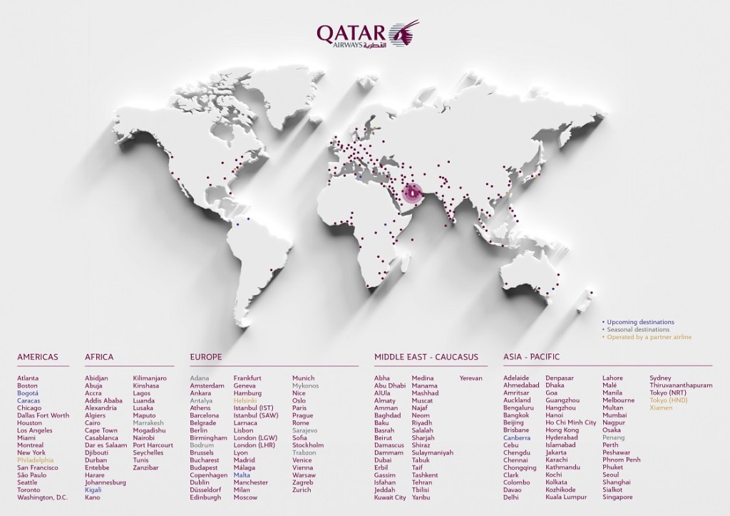 È inoltre possibile volare a Roma, in Italia, fino a tre volte al giorno, e a Delhi, in India, due volte al giorno con Qatar Airways via Doha.