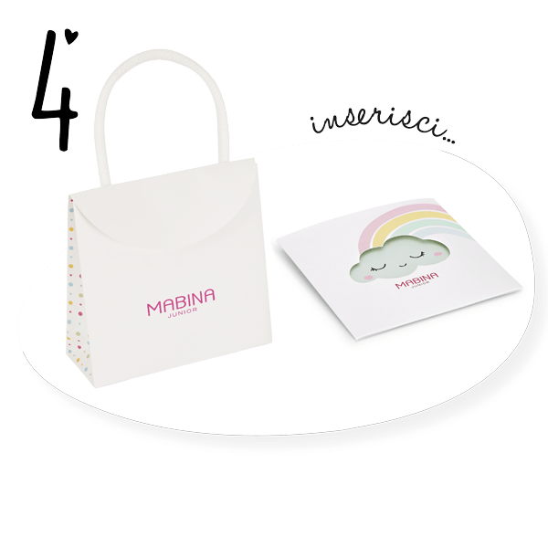 4 INSERISCI la card nella bustina con il bracciale rivolto all'interno per proteggerlo, ed infine confeziona il tutto nell'apposita shopper