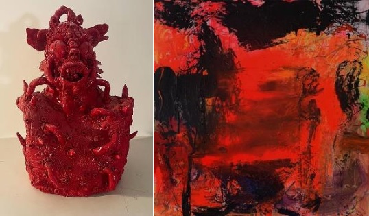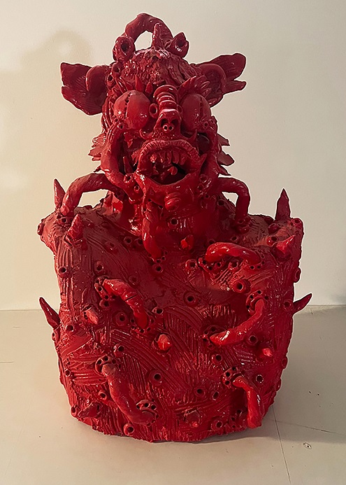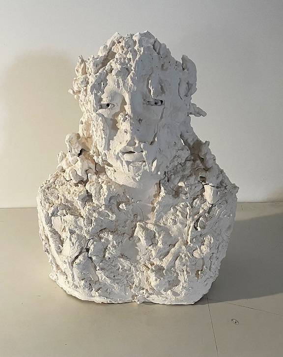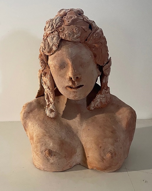 Accanto alle opere del tedesco Thomas Lange, a farsene contrappunto plastico e tridimensionale, le sculture in terracotta di Mutsuo Hirano (Hyogo, 1952), artista di origine giapponese, si inseriscono nel percorso espositivo come frammenti di memoria e mito. Le sue figure attingono a tradizioni arcaiche, a riferimenti orientali e animisti, ma si mescolano ai temi della mostra: Lampedusa, Teheran, Botticelli, Pontormo vengono reinterpretati in forme plastiche che modellano angeli, demoni e idoli sacri, restituendo un’umanità sospesa tra passato e presente, tra oriente e occidente.