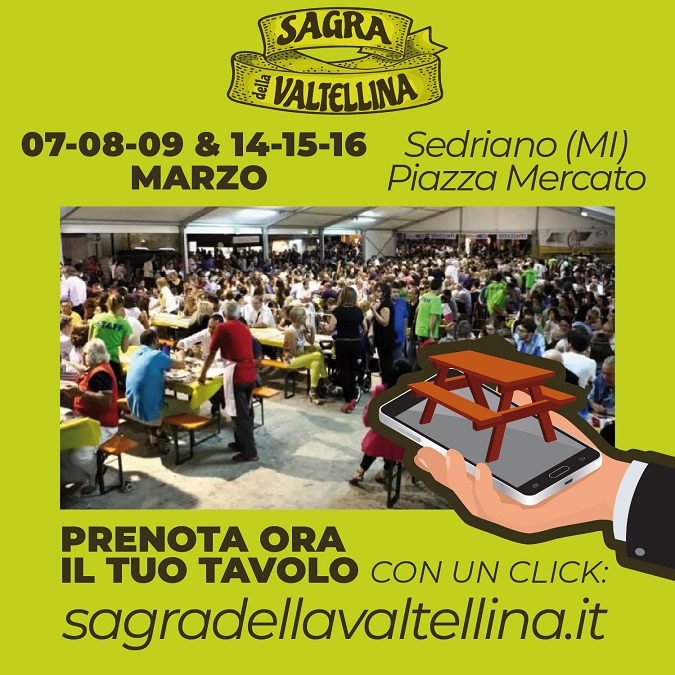 La manifestazione enogastronomica (07-08-09 e 14-15-16 marzo 2025), che ha già riscosso successo in diverse località della Lombardia, stavolta avrà luogo in Piazza Mercato a Sedriano. Nel menù: pizzoccheri, sciatt e piatti tipici valtellinesi. L’intrattenimento sarà a cura della Corte di Menelao con cabaret, musica live, spettacoli di magia, trampolieri, fachiri, mangiafuoco, burlesque e molte altre attrazioni. Gli organizzatori hanno donato al Municipio 100 voucher per un pasto gratuito, destinato ai cittadini che ne hanno più necessità.