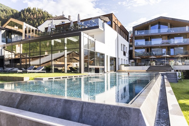 Nel cuore di Burgusio, in Alta Val Venosta, l’Hotel Weisses Kreuz – Adults Only è una struttura di charme, sapientemente restaurata riportando agli antichi splendori due edifici storici, dove storia e modernità si fondono in un equilibrio perfetto. L’Hotel dispone di 37 suite raffinate e di una Spa d’eccellenza, l’Aurea Mea Spa, dotata di una piscina a sfioro riscaldata tutto l’anno e una vista senza pari quanto inaspettata sull’abbazia di Monte Maria e sull’imponente massiccio dell’Ortles.