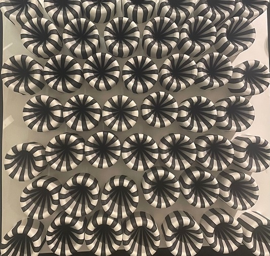 «In questa mostra presento una selezione di opere in cui la calza diventa il pennello o il filo conduttore di tutti i quadri, da cui si può intravedere un futuro per la calza stessa – spiega l’artista – La mia arte è pittura oggettuale ossia quadri oggetto. Una ricerca dei complessi rapporti tra spazio, luce e forma con un’astrazione geometrica in 3D».