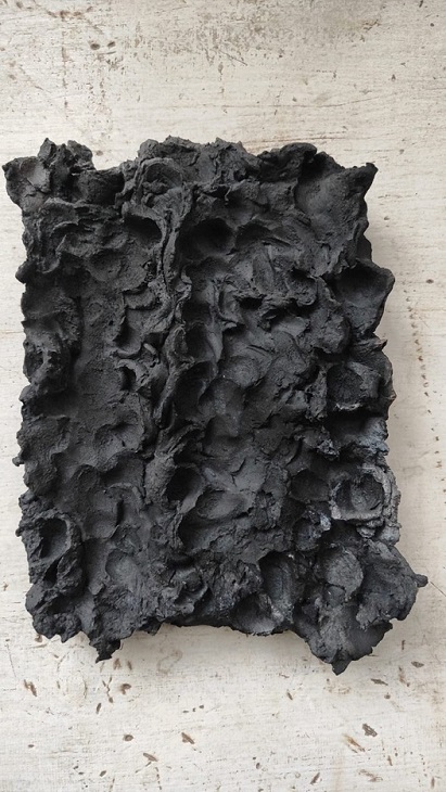 Nella seconda stanza, il soggiorno, i suoni disturbati di Nicole Andrea Fontana generano un paesaggio sonoro surreale che amplifica il senso di straniamento. La somma dei suoni, compone una ‘musica del quotidiano’. Qui un televisore apparentemente guasto attende gli spettatori, in dialogo aperto con le grafiti fantasmatiche di E. Molignani. Le Mappe del tempo che resta di Mariangela Zabatino affiorano fra le pareti come volumi prelinguistici, affettività archeologiche sul punto di sgretolarsi. Dietro l’angolo, un’opera di Davide Masciandaro, produce un’ulteriore interferenza.