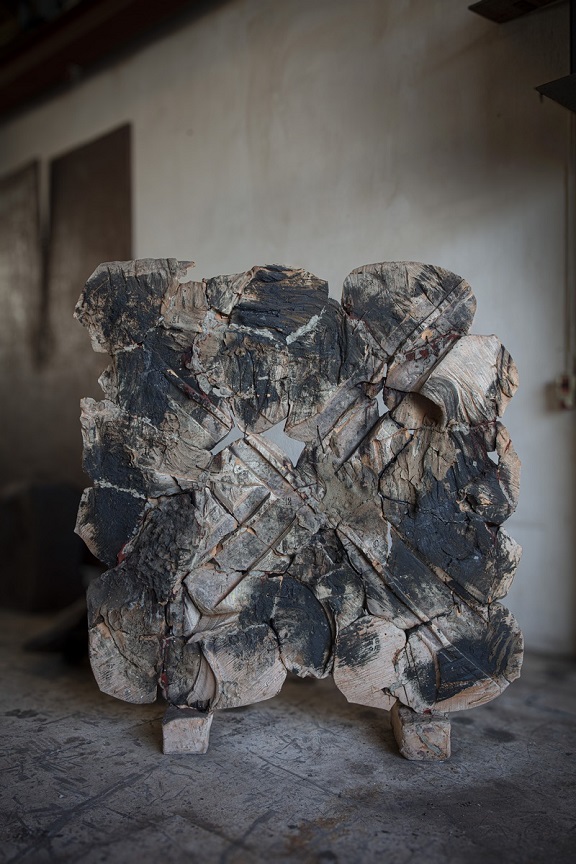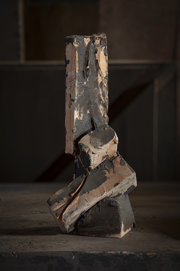 L’argilla, conosciuta nel laboratorio di famiglia a Grottaglie e studiata a Faenza, interessa infine l’artista per la sua suscettibilità alle trasformazioni del fuoco, per il suo fendersi e lacerarsi, senza alcuna volontà di controllo totale.