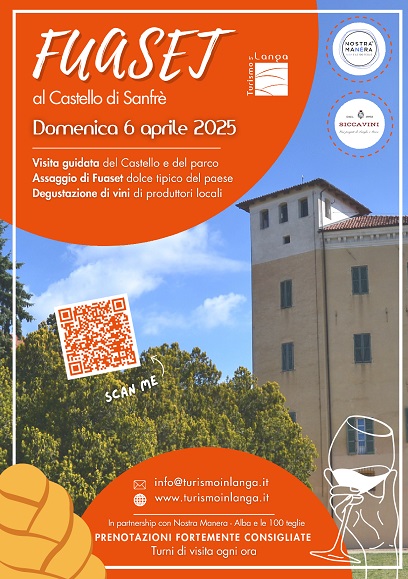 Infine, poiché siamo in Quaresima, ci si saluterà con un assaggio del tipico dolce pasquale Fuaset realizzato per l’occasione da Nostra Manera – Alba e le 100 teglie e una degustazione di un calice di vino del territorio offerta della cantina Sicca Vini di Sanfrè.