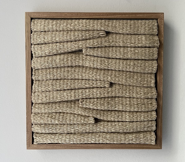 Monica Giovinazzi affida alla poesia il ruolo di veicolo di trasformazione. La sua installazione modulare, realizzata interamente in upcycling, è un’opera in continua evoluzione, che riflette sul potere delle parole nel plasmare nuove realtà. L’artista esplora la capacità del linguaggio poetico di aprire orizzonti, immaginare alternative e ridefinire la narrazione individuale. Il risultato è un lavoro che abbatte le barriere tra arte e vita quotidiana, trasformando il linguaggio in strumento di resistenza e rinnovamento. Andi Kacziba indaga il tempo come traccia sulla materia e sul corpo. La sua serie Bivium, realizzata intrecciando corde su telai di legno, è una metafora della lotta femminile contro la pressione sociale sulla bellezza e sull’immagine. Gli arazzi di Kacziba evocano superfici epidermiche segnate dal tempo, pelle raggrinzita e plasmata dagli anni, testimoniando la tensione tra identità e trasformazione. In un mondo che impone la giovinezza come valore assoluto, l’artista afferma il diritto delle donne a esistere nella loro autenticità, rivendicando la memoria del corpo come parte integrante della narrazione femminile.