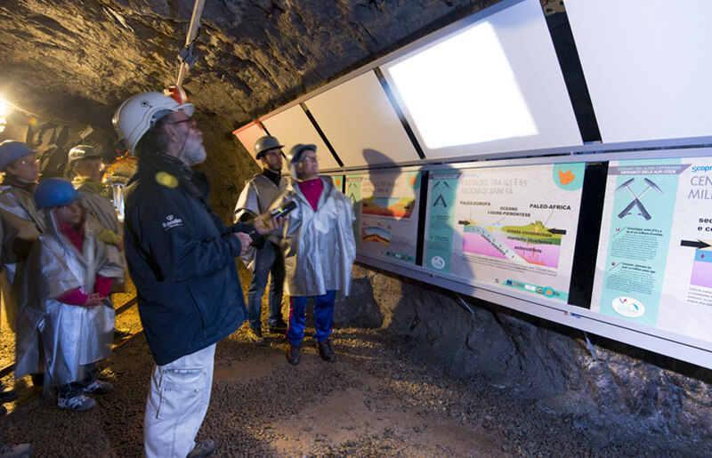 A ScopriMiniera si è affiancato da alcuni anni il percorso ScopriAlpi nella miniera Gianna, dove si può vedere il punto esatto in cui rocce originatesi negli oceani della Tetide sovrastano rocce di origine continentale, confermando la teoria che attribuisce la formazione delle Alpi allo scontro tra le placche continentali africana ed europea. A quasi 2 km di profondità dalla superficie, le gallerie della miniera Gianna hanno intercettato e reso visibile il contatto tra le due placche tettoniche e la cicatrice che testimonia lo scontro avvenuto 65 milioni di anni orsono tra i due continenti.