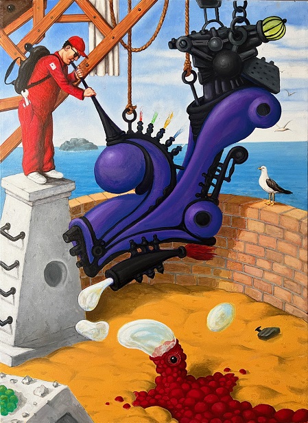 Rimandi e allusioni, citazioni ironiche ed autoironiche, scherzi e trabocchetti mentali, folgorazioni e amnesie, colpi e strizzate d’occhio, salti, scavi, abbagli condurranno il visitatore a perdersi in un mondo stralunato e geniale, in un percorso che, come è naturale per il Labirinto e in riferimento alla mente labirintica dell’artista, non sarà meccanicamente cronologico ma presenterà la tripartizione serafiniana con originalità e ironia: Da Serafini a Luigi. L’uovo, lo scheletro, l’arcobaleno è l’occasione imperdibile per scoprire o riscoprire l’incredibile artista che è Luigi Serafini.