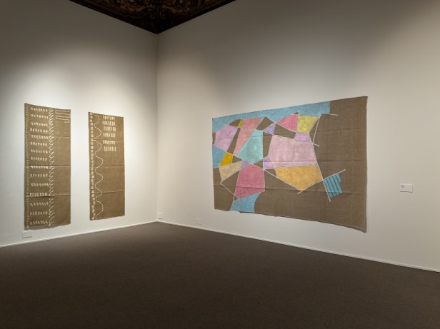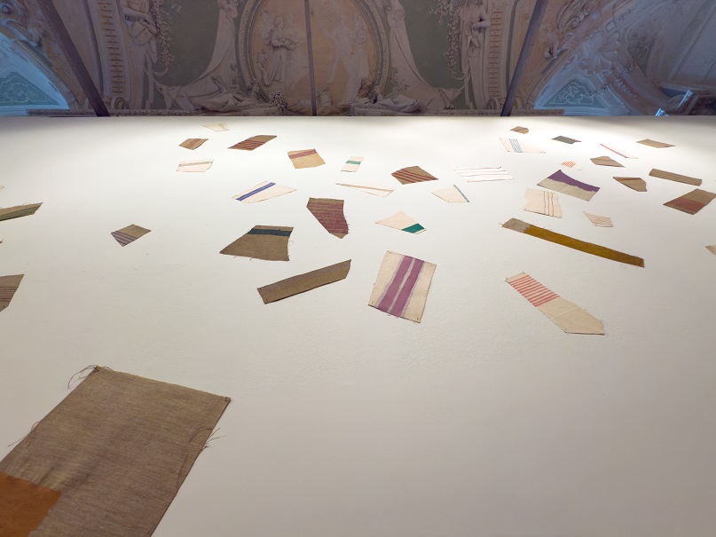 L’esposizione propone un dialogo aperto tra le grandi tele astratte di Giorgio Griffa e la storia e l’architettura del palazzo.