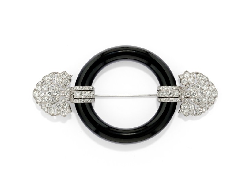 Tra le rarità spiccano un’elegante spilla da cintura in onice nero e diamanti di Cartier degli anni Venti (lotto 180, base 18 mila euro) e la coeva raffinata spilla-orologio in diamanti e smalti in scatola originale di Cusi Milano (lotto 21, base 4 mila euro).