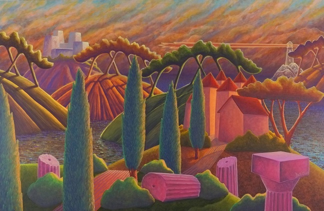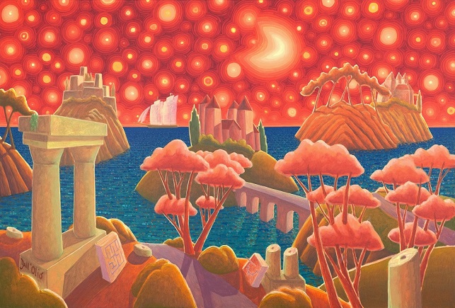 È un viaggio attraverso colori vibranti e visioni stratificate, in cui l’osservatore si scopre improvvisamente parte di un universo che lo avvolge e lo interroga. Le sue opere non offrono risposte, ma suggeriscono possibilità, aprono varchi inaspettati, come finestre su mondi paralleli dove tutto è e non è allo stesso tempo. Così, ogni tela diventa uno specchio deformante, un’eco di meraviglia che risuona dentro chi osserva, invitandolo a perdersi e a ritrovarsi in un sogno che ha i contorni incerti della poesia.