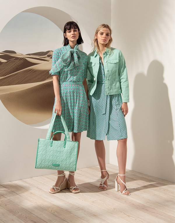 Infine, Kasbah mescola il celeste e il crema, evocando la serenità delle architetture marocchine e il paesaggio iconico della Kasbah. Questa parte della collezione esplora un’eleganza senza tempo, con abiti midi e pantaloni che combinano toni neutri con linee morbide. Perfetto anche per la sera, il look Kasbah può essere completato con tacchi eleganti o sandali gioiello, abbinato a borse in cuoio o pelle per un tocco di raffinatezza.