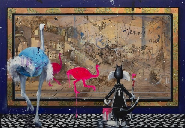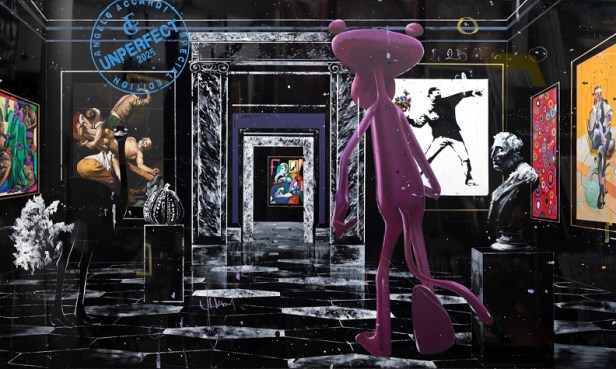 «Art Crimes è un’indagine visiva sul furto intellettuale nell’arte – spiega il curatore Nino Florenzano.- Ogni opera nasce da un’altra: l’arte è un dialogo senza tempo, in cui i confini tra ispirazione, omaggio e appropriazione si dissolvono. Da Leonardo a Duchamp, da Picasso a Bacon, il gesto artistico è spesso un atto di sottrazione e trasformazione. Ogni capolavoro è una traccia che si rigenera nel tempo. L’arte si nutre di citazioni e trasformazioni: ogni artista rielabora il passato, ruba frammenti di idee e li reinventa. Mentre l’ispettore Clouseau indaga su questi furti impossibili, le prove si moltiplicano. Mentre Cattelan rivisita il concetto di ready made, Picasso si ispira alle maschere africane, dando vita a un linguaggio che rivoluziona la rappresentazione del volto umano. Socrate, immerso nel dialogo con l’Intelligenza Artificiale, si confronta con un sapere che non pensa, ma apprende e rielabora, un riflesso del passato trasformato in algoritmo. Questi furti sono atti di creazione, dove ogni nuova visione si costruisce su quella precedente, lasciando Clouseau a inseguire un enigma che non avrà mai fine”.
