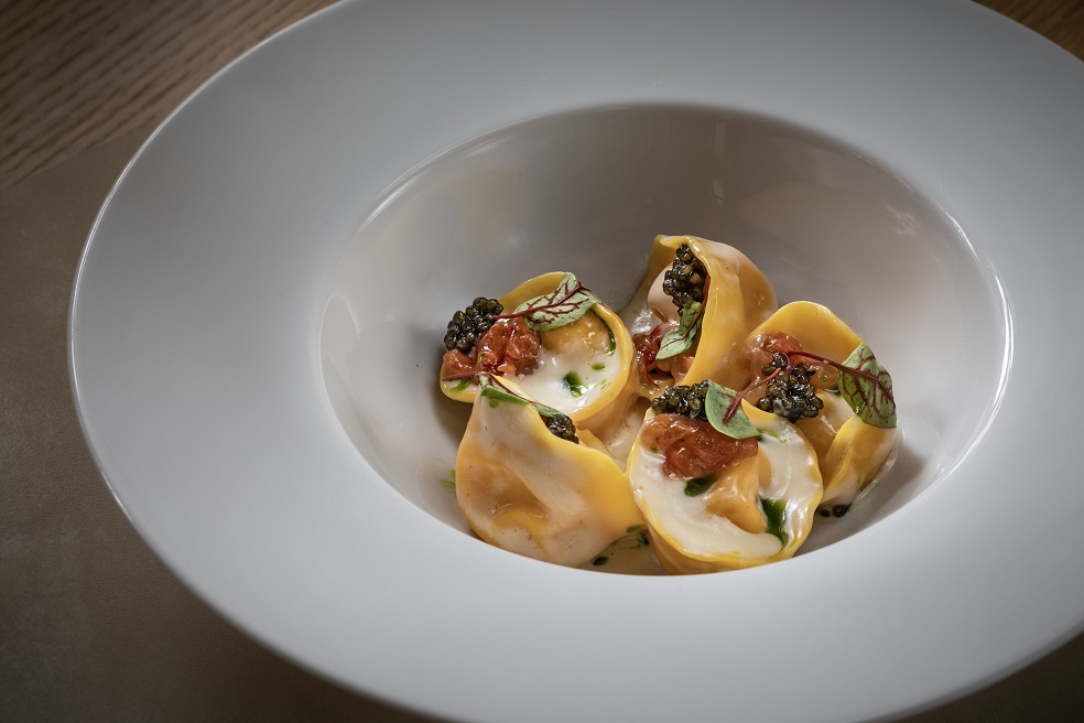Per chi cerca un’esperienza più intima e raffinata, il ristorante gourmet offre ventotto coperti in una sala con cucina a vista. Il menu à la carte si apre con i crudi Nieddittas: gamberi e scampi del Mar di Sardegna, tartare e carpacci di pesce freschissimo accompagnati dalle salse dello chef. Tra i primi, i più apprezzati sono i piatti di pasta fresca come i Tortelli caserecci ripieni di gambero rosso, beurre blanc alla soia, battuta di gambero e caviale Real Caviar, o i Tagliolini fatti in casa con dentice, zucchine in osmosi e tonnetto affumicato, una delle novità di stagione.