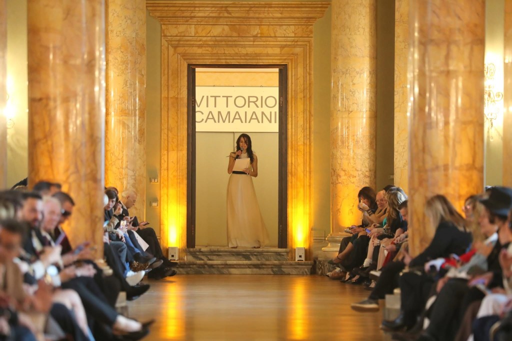 Oltre trecento ospiti hanno assistito alla sfilata del talentuoso couturier marchigiano Vittorio Camaiani alla Galleria del Cardinale Colonna.