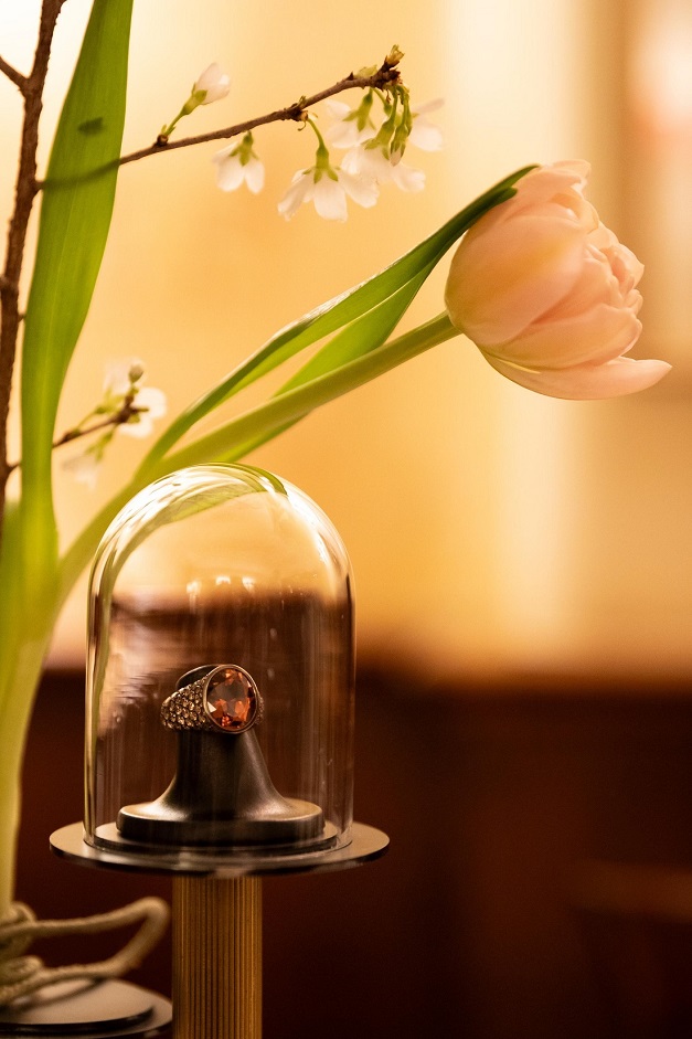 Il design della collezione Chevalier di Villa Milano, estensione della collezione materica, si distingue per la sua estetica “bold”, caratterizzata da linee pulite e una forte identità visiva. Gli anelli presentano pietre centrali di grande impatto, per dimensione o colore, spaziando dagli iconici diamanti e zaffiri fino alle più divertenti tormaline e granati, enfatizzando il contrasto tra tradizione e modernità.