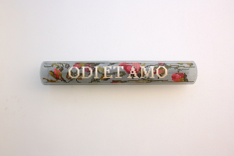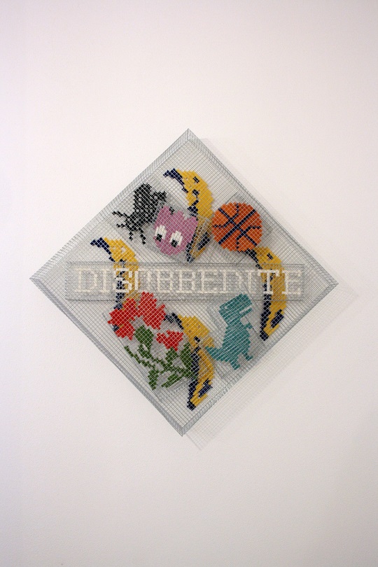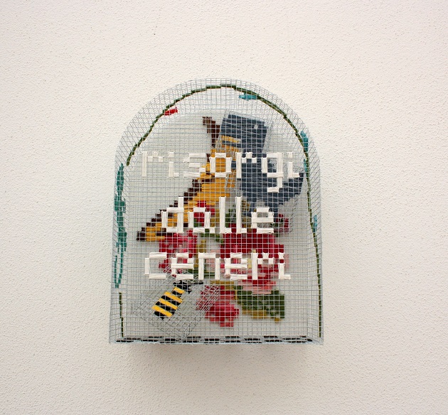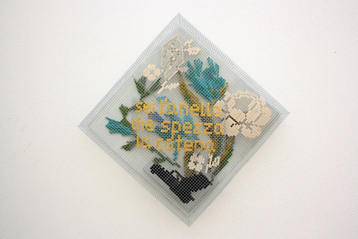 Nelle opere in mostra emerge una tensione costante tra materiali contrastanti e una narrazione che intreccia il tempo ciclico e direzionale, tra la custodia della memoria e il superamento dei suoi limiti. L’uso del ricamo richiama il ricordo infantile di una libertà femminile vissuta dalle donne allorché insieme ne condividevano il tempo ad esso dedicato fuori dal controllo e dallo sguardo maschile. Gesti, dunque, che da semplice attività manuale, si trasformavano in spazio di espressione e autodeterminazione. Oggi, questa tecnica diventa strumento di affermazione e ribellione: ricamare simboli di emancipazione, come una vulva o un utero, non solo rafforza il valore assertivo dell’opera, ma spezza definitivamente il legame con una libertà concessa e regolata dall’esterno. Attraverso la sua arte, D’Agrosa restituisce voce e dignità a un universo femminile di cui afferma pienamente l’autonomia e la peculiarità.