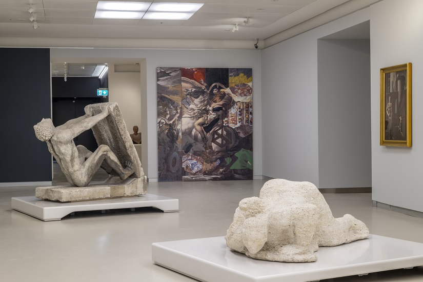 Al piano superiore, Bonaparte valica il Gran San Bernardo — dipinto da Jacques-Louis David a inizio Ottocento e reinterpretato da Rauschenberg negli anni Ottanta del secolo successivo — trova il suo posto tra i dipinti di Mario Sironi e Carlo Carrà. L’opera, intitolata Able Was I Ere I Saw Elba dal leggendario palindromo che Napoleone avrebbe pronunciato prima di attraversare le Alpi, si ò posta in dialogo anche con la grande scultura di Arturo Martini, I morti di Bligny trasalirebbero il cui titolo deriva da un discorso di Mussolini sulle complicate relazioni tra Italia e Francia a metà anni Trenta.