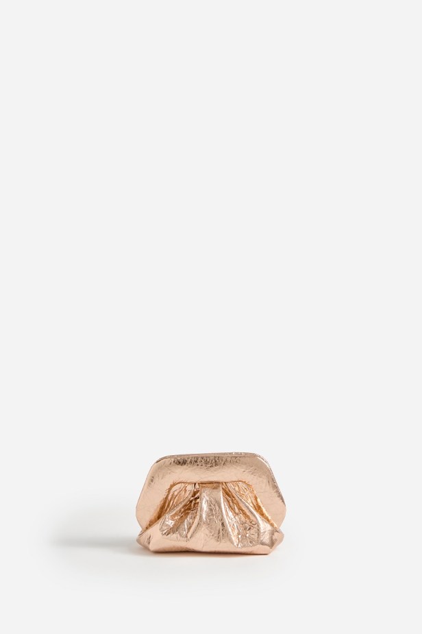 Per la stagione primavera-estate 25, il Pineapple Fabric è protagonista di alcuni dei modelli iconici del Brand, come Tia, Gea, ma anche di nuovi design come la pochette Emera e la cross-body Dafne. Oltre alle classiche tonalità Silver e Gold, il brand introduce la nuova ed esclusiva Gold Rose, una nuance elegante e raffinata che arricchisce la proposta.