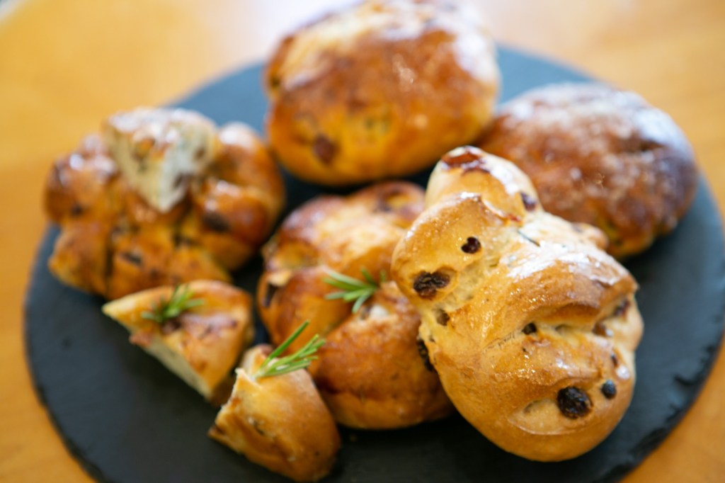 Nato a Firenze in età Medievale (la parola “ramerino” risale al XIV secolo e di questa pianta erano piene le colline intorno alla città), si tratta di un pane “devozionale” (come ricorda il Petroni nel suo libro) ricco di simboli sacri e dai forti connotati religiosi. Già gli ingredienti sono fortemente simbolici: il rosmarino sin dall'antica Grecia è simbolo dell'immortalità dell'anima e nel Medioevo veniva considerato un amuleto scaccia spiriti maligni; l’uva rappresenta la comunione con Dio. E poi ci sono quei tagli a forma di croce praticati sulla superficie... Legato tradizionalmente al periodo della Quaresima, si racconta che lo consumavano soprattutto i contadini che assistevano ai riti religiosi del Giovedì Santo. Solo a partire dagli anni Ottanta del secolo scorso, per via della grande richiesta, si è iniziato a produrlo tutto l’anno per lasciare spazio, tra agosto e settembre, a un altro pane dolce: la Schiacciata con l’uva. A conferirgli il caratteristico color ambrato è l’olio che viene spennellato sulla superficie con un rametto di rosmarino dopo la lievitazione.