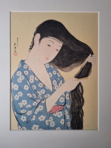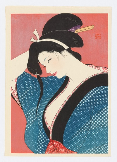 Di particolare interesse sono state anche le opere di Itō Shinsui, maestro del genere “bijinga”, immagini di belle donne. Le sue raffigurazioni femminili si distinguono per l’eleganza delle pose, la delicatezza dei lineamenti e la sensibilità nella rappresentazione dei kimono e degli accessori tradizionali. Attraverso il suo lavoro, Shinsui è riuscito a modernizzare un genere classico dell’ukiyoe, infondendovi una nuova vitalità e un senso di realismo psicologico precedentemente assente.