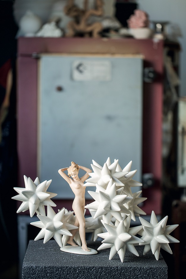 Le raffinate ceramiche di Salvatori raccontano microstorie sospese tra gioco e sofisticata ricerca formale.
