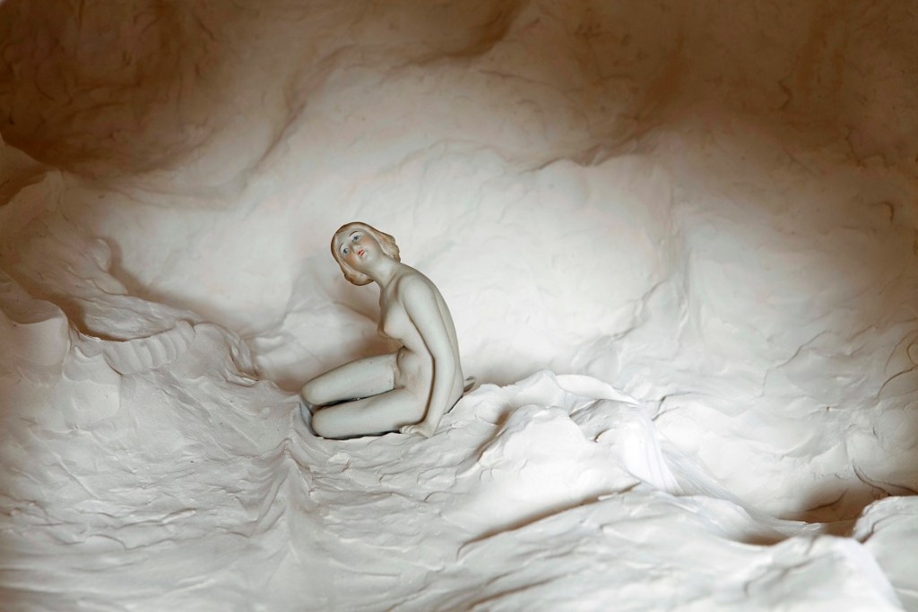 In Testone e Sono come pensieri dal piede pesante, hanno il piede pesante anche se abitano il cielo, la testa e il piede del David di Michelangelo, riprodotti con stupefacente minuzia, si svuotano della loro monumentalità per accogliere, come cavità da esplorare, delicate figure femminili.