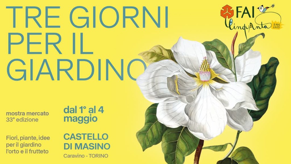 È “Il giardino possibile. Il tempo, la cura” il tema della XXXIII edizione primaverile della “Tre Giorni per il Giardino”, tra le più importanti e apprezzate manifestazioni florovivaistiche d’Italia, che si svolgerà quest’anno straordinariamente nell’arco di quattro giornate, da giovedì 1° a domenica 4 maggio, al Castello e Parco di Masino, bene del FAI a Caravino (TO).