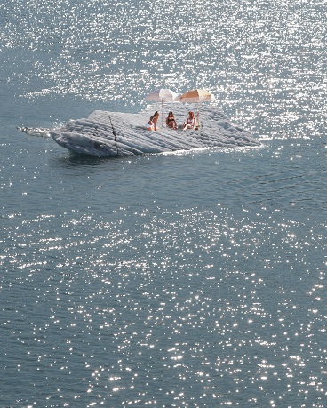La mostra si sviluppa attorno a due nuclei distinti, uniti da una riflessione sul potere dell’immagine di trasformare, alterare e giocare con il reale. Nella serie fotografica August in Greenland, gli iceberg, emblemi della fragilità climatica, diventano sfondi surreali per scene vacanziere popolate da figure umane sospese, inconsapevoli, in un paesaggio che suggerisce al tempo stesso bellezza e inquietudine.