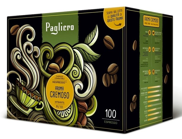 Caffè Pagliero, Esclusive Brand di Tuttocapsule, è ora commercializzato con un nuovo packaging, che mantiene la caratteristica grafica decisa, dinamica e di forte impatto, oramai riconosciuta, ma aggiunge su un lato della scatola un adattamento dei parametri di valutazione del cupping score SCA (Specialty Coffee Association) in riferimento al mercato delle capsule.