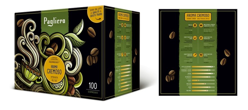 Caffè Pagliero, Esclusive Brand di Tuttocapsule, è ora commercializzato con un nuovo packaging, che mantiene la caratteristica grafica decisa, dinamica e di forte impatto, oramai riconosciuta, ma aggiunge su un lato della scatola un adattamento dei parametri di valutazione del cupping score SCA (Specialty Coffee Association) in riferimento al mercato delle capsule.