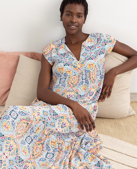 Prodotta da fonti rinnovabili come la polpa di legno, questa viscosa è realizzata con un processo produttivo che riduce drasticamente l’impatto ambientale, offrendo un materiale morbido e setoso, perfetto per abiti e bluse che rispondono all’esigenza di comfort estivo senza rinunciare a stile e classe.
