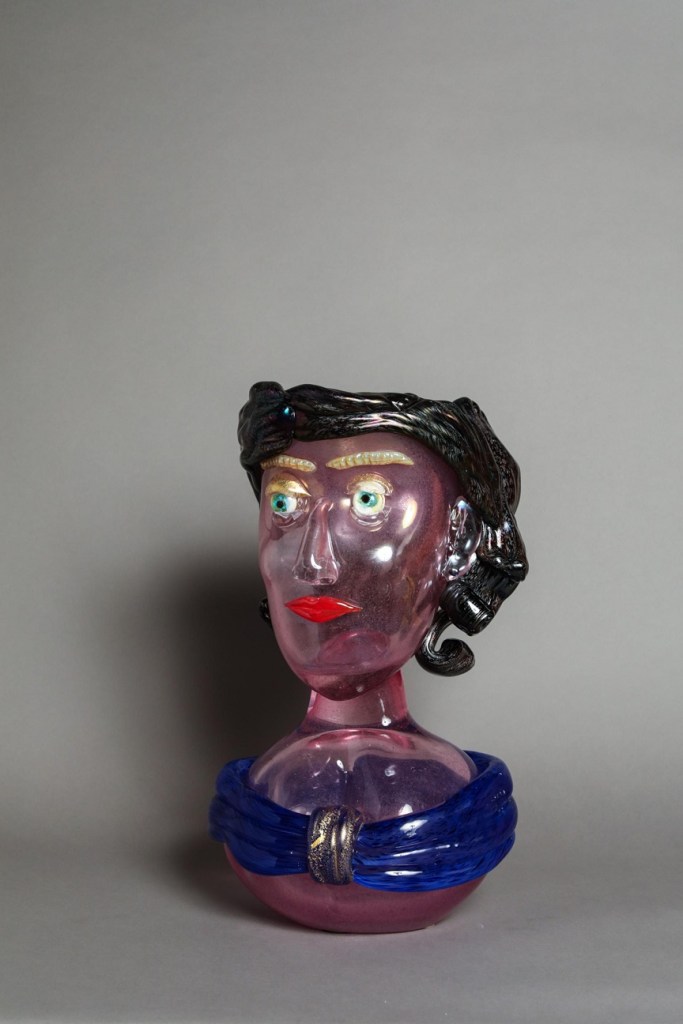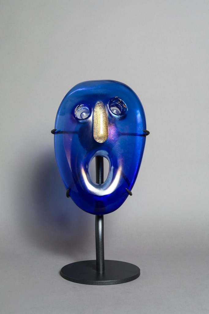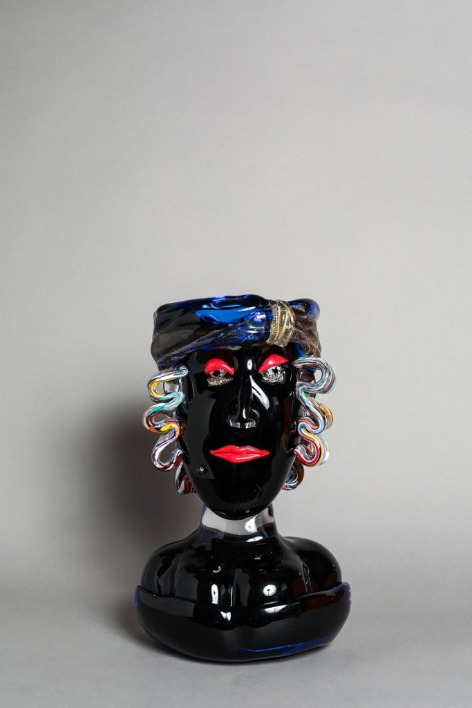 Gli mancava solo il medium ideale, che ha scoperto durante un viaggio in Kenya, dove si è avvicinato per la prima volta alla soffiatura del vetro, la materia che gli mancava per dare forma al suo immaginario. Da quel momento ha intrapreso un lungo cammino di sperimentazione che lo ha condotto a Murano, nella storica vetreria Zanetti, dove ha affinato la tecnica e dato vita ai suoi celebri volti modellati a caldo. Ogni soffio è un gesto creativo, intimo e irripetibile, che trasforma la materia incandescente in icona, in presenza viva e pulsante.