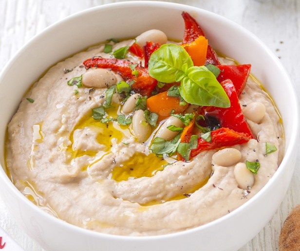 La foodblogger Anna Fracassi propone per Bauer una variante raffinata e originale dell’iconica crema mediorientale a base di ceci: in questo caso vengono utilizzati i fagioli cannellini che con il loro sapore leggermente dolce e la consistenza burrosa, si sposano perfettamente con gli ingredienti tipici di questa preparazione.