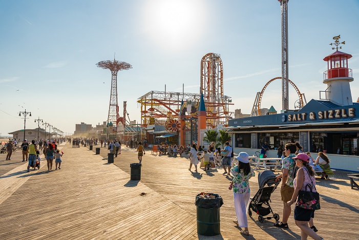 Tra i luoghi simbolo dell’intrattenimento americano, la celebre Coney Island di New York rappresenta una delle culle storiche dell’industria del divertimento. Ancora oggi i visitatori possono vivere l’emozione delle sue attrazioni, come le montagne russe Coney Island Cyclone e la Wonder Wheel, oltre a godersi una passeggiata sulla storica passerella affacciata sull’oceano. Proseguendo verso sud, la costa del New Jersey è costellata di parchi di divertimento, tra cui Morey’s Piers e Castaway Cove di Playland.