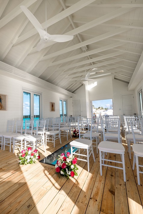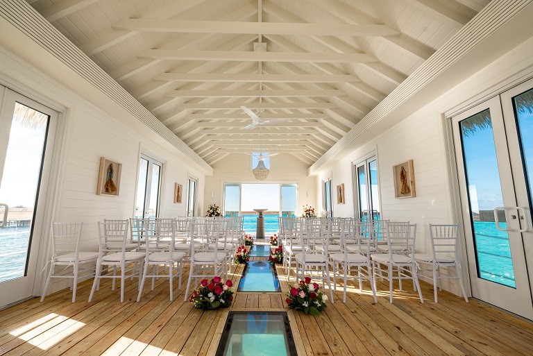 Questa è attualmente la più grande Overwater Wedding Chapel del portfolio Sandals, con una capienza di 64 persone sedute.