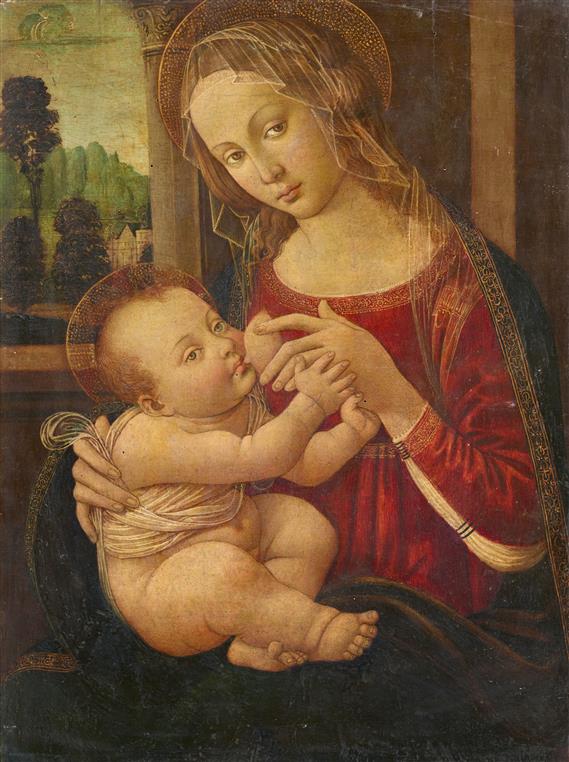 Tra gli esempi della pittura rinascimentale fiorentina si segnala il quadro della bottega del pittore Lorenzo di Credi che raffigura la Madonna che allatta (stima: 40.000-60.000 euro). Il volto delicatamente contornato della Madonna e il Bambino ben nutrito, vivace e con le gambette incrociate, si colloca nella tradizione degli allievi di Filippo Lippi e Andrea del Verrocchio.
