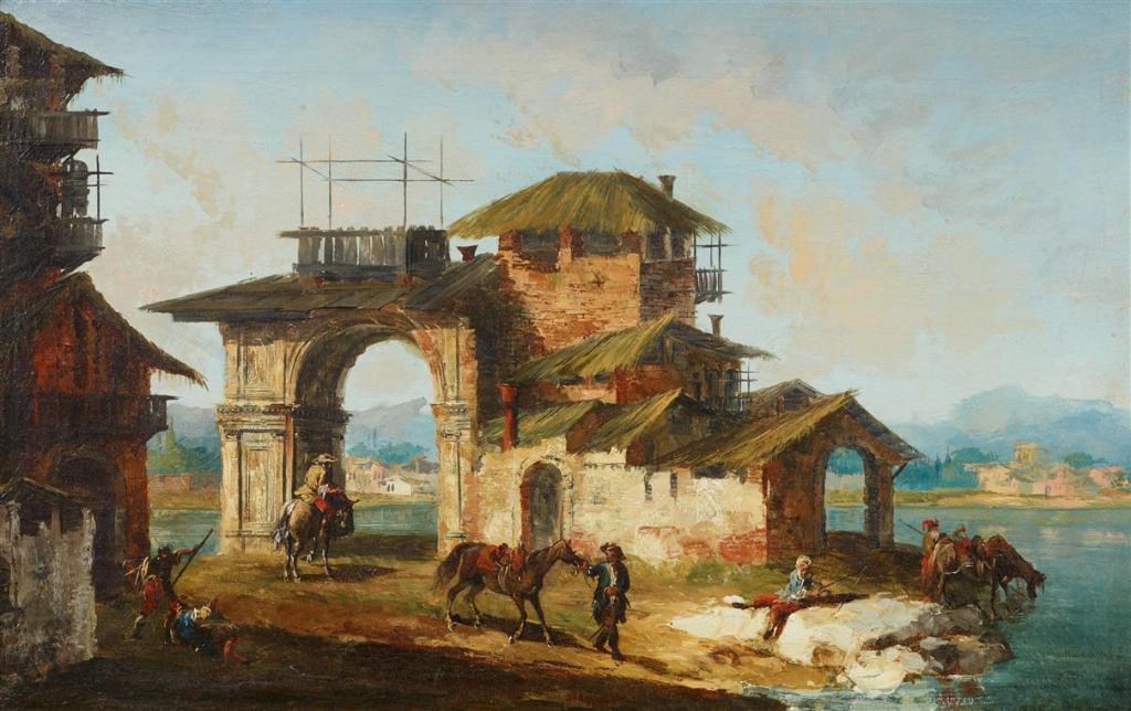L’asta presenta pregiate opere dei maestri italiani tra cui spicca la coppia di tele del maestro Michele Marieschi (stima: 80.000-120.000 euro). Straordinari esempi di capriccio architettonico, le due tele evidenziano caratteristiche tipiche dello stile del pittore veneziano: rovine con capanne e figure circostanti, messe in scena in modo efficace grazie ad un uso sapiente della luce.