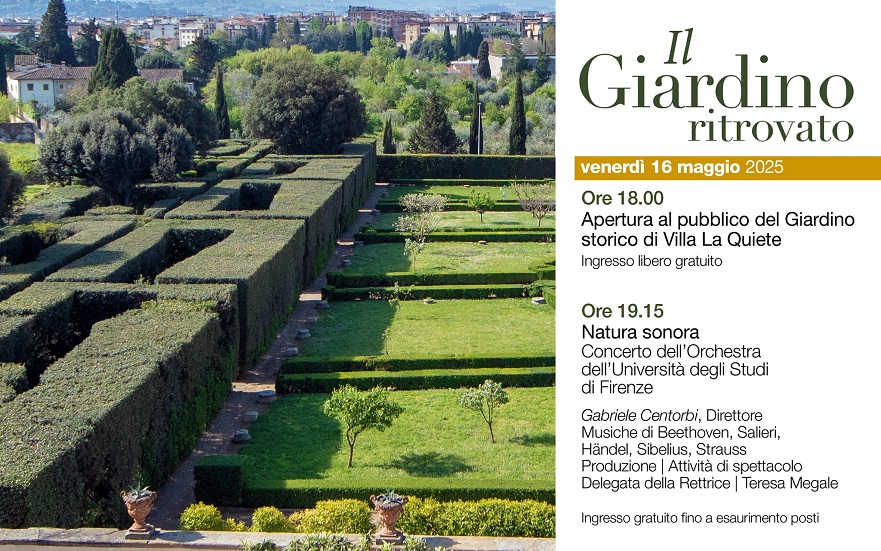 Villa La Quiete, oggi parte del Sistema Museale di Ateneo e di proprietà della Regione Toscana, è stata affidata all’Università di Firenze che ha scelto questo luogo simbolico per la conclusione delle iniziative per le celebrazioni dei suoi cento anni. Villa La Quiete fu in passato un rifugio amato da grandi figure della famiglia Medici, come Cristina di Lorena, Vittoria Della Rovere e l’Elettrice Palatina Anna Maria Luisa de’ Medici, che la scelse come dimora. Per secoli ospitò anche l’educandato delle Montalve, una congregazione laica che offriva istruzione alle giovani nobildonne fiorentine, guadagnandosi il titolo di realtà educativa tra le più moderne d’Europa. Questo spazio verde del Settecento, restaurato grazie all’impegno dell’Università di Firenze con il supporto dei fondi del Piano Nazionale di Ripresa e Resilienza (PNRR), testimonia l’avvicendarsi di molte figure femminili che hanno vissuto questi luoghi, lasciando la loro eredità artistica e intellettuale. Il giardino fu realizzato tra il 1724 e il 1727 per volere dell’Elettrice Palatina, come luogo di piacere e serenità per le donne della Villa, ma anche per le successive generazioni di giovani.